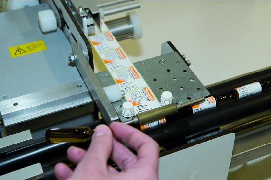 Etikettieren der abgefüllten 5 ml OPC-Braunglas-Ampullen