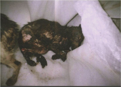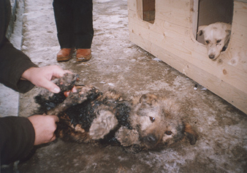 Diese rumänischen Hunde wurden in Rumänien mit heißem Teer übergossen und sollten dann getötet werden.